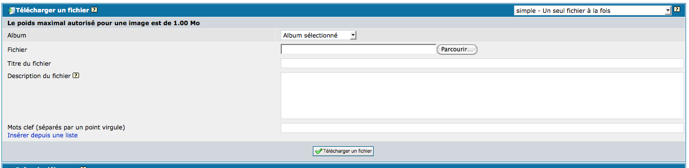Sur la page de téléchargement de fichiers, choisissez un album depuis la liste déroulante "Album"